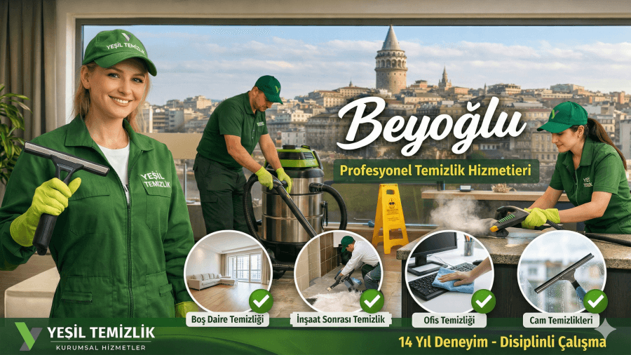 İstanbul’un en gözde semtlerinden birisi olan Beyoğlu’nda Yeşil Temizlik Şirketi olarak uzun yıllardır hizmet veriyor, yaşam alanlarını, çalışma ortamlarını tertemiz hale getiriyoruz. Çok geniş bir hizmet yelpazesine sahibiz ve Beyoğlu bölgesinde temizlik bizim işimiz…